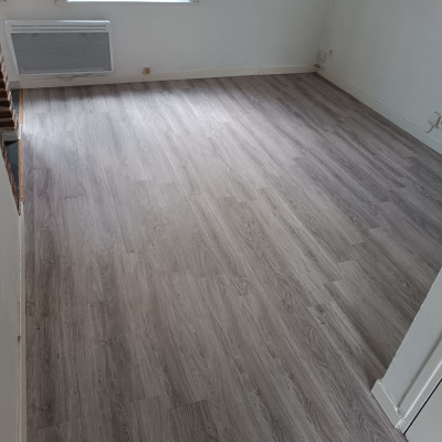 Parcourez les photos de nos travaux à Lille et ses alentours, illustrant la qualité et l’esthétique de nos sols souples en lames et de nos parquets stratifiés.